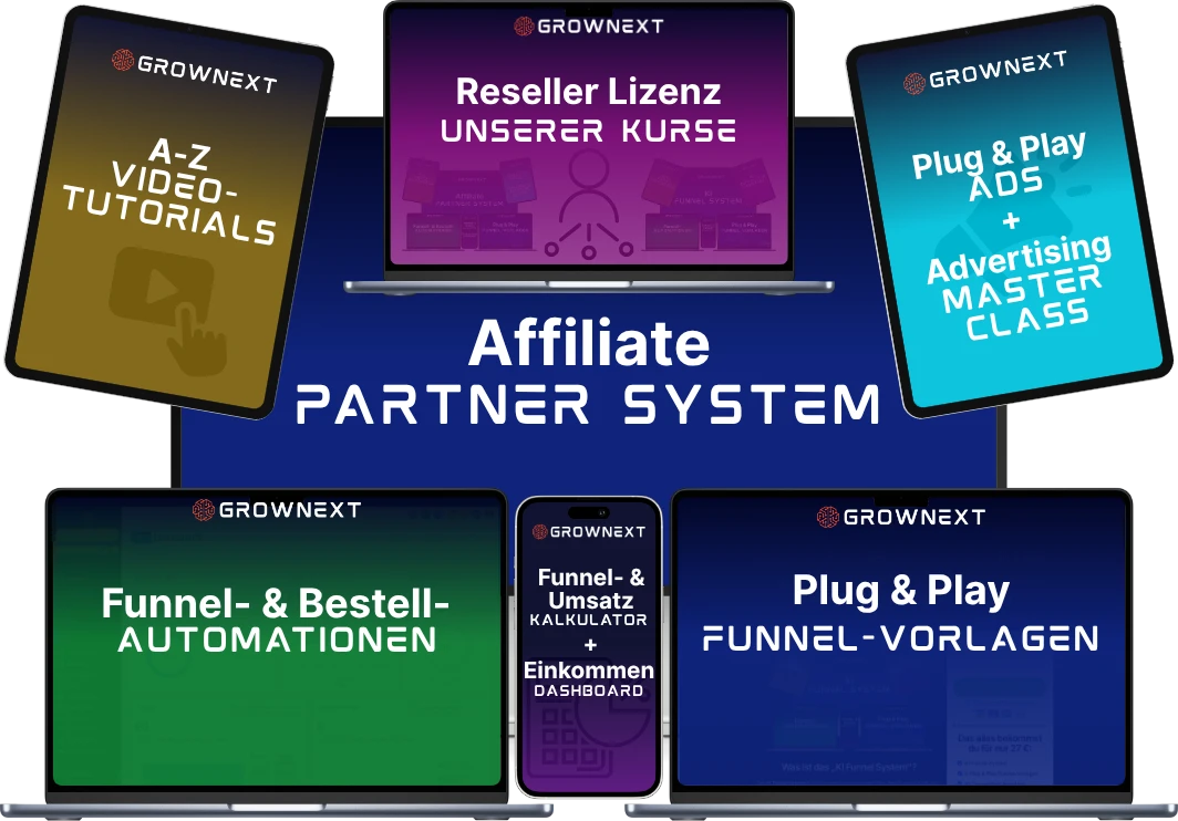 Alles, was du brauchst, um in wenigen Minuten dein eigenes, automatisiertes Einkommen mit dem Grownext Partner System aufzubauen.