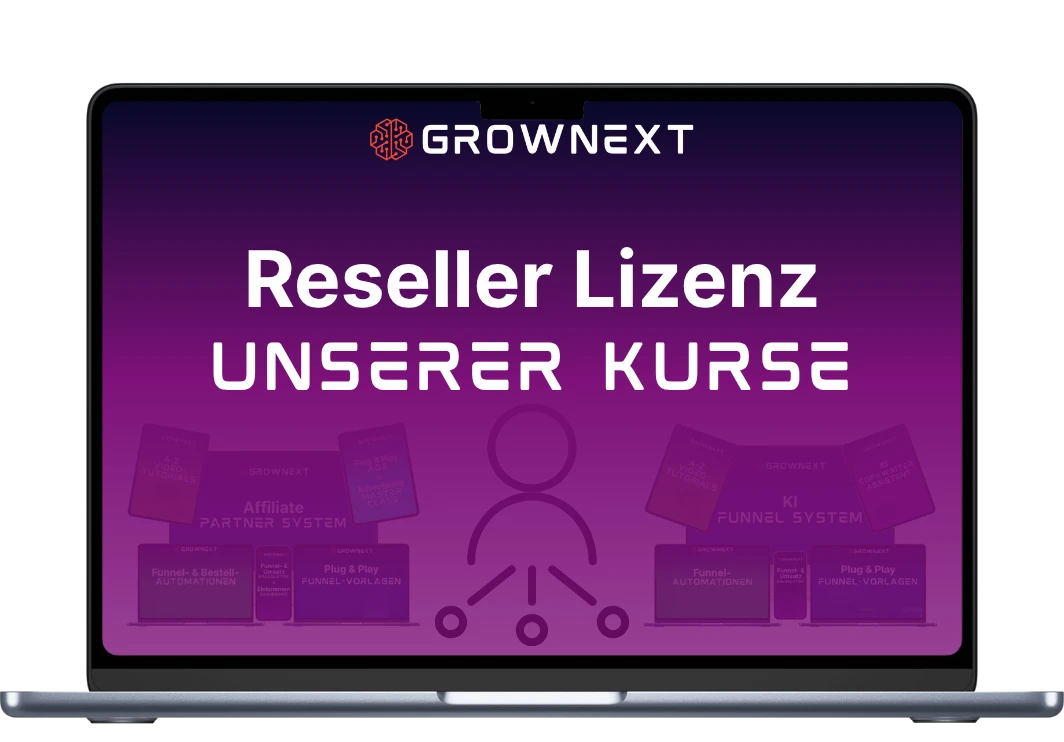 Du erhältst ein komplett fertiges, eigenes Whitelabel-System, mit dem du Grownext Kurse und Software unter deinem Namen verkaufen kannst - inklusive Funnel, Ads, E-Mails und Kursinhalten.